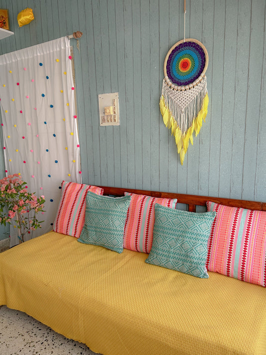 Room decor combo - Curtains, Dreamcatcher and Sofa throws - Blue